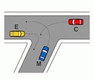 72. Dovendo attraversare l'incrocio rappresentato in figura i veicoli devono transitare secondo quale ordine?