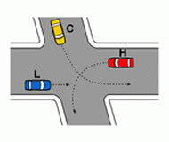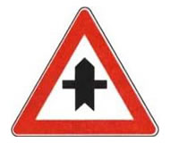 82. Dovendo attraversare l'incrocio rappresentato in figura i veicoli devono transitare nel seguente ordine: