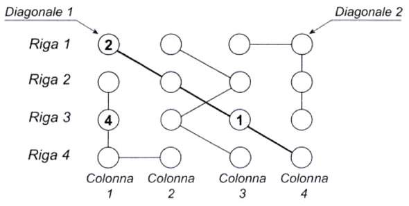 Le diagonali invece non necessariamente devono rispettare le regole sopra esposte. Individuare l'alternativa che rappresenta la corretta sequenza di numeri della Colonna 1, riportati dall'alto basso.