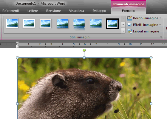 Al rilascio del mouse, la porzione selezionata del desktop viene inserita in Word come immagine. Da notare che quest'ultima procedura si può utilizzare per catturare una qualsiasi porzione dello schermo (ad esempio, la possiamo utilizzare per inserire come immagine parte di una finestra).