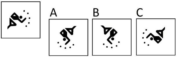 89. Indicare in quale box è contenuto il disegno dato dopo essere stato ruotato e ribaltato.