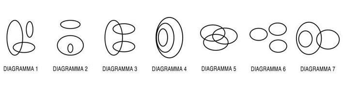 144. Individuare il diagramma che soddisfa la relazione insiemistica esistente tra i termini dati.