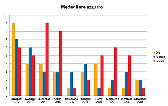 242. Il grafico rappresenta il medagliere azzurro ai Campionati Mondiali di Nuoto.